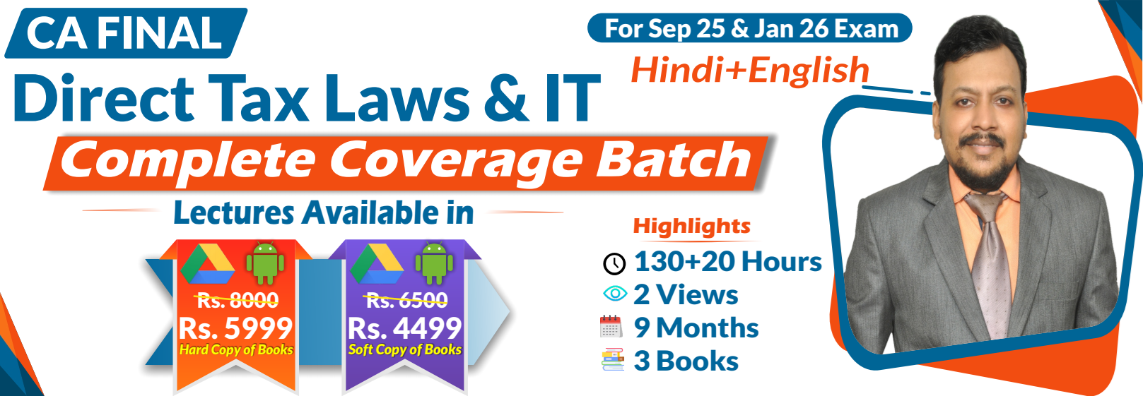 • CA Final Direct Tax Complete Coverage Batch For Sep 25 & Jan 26 By CA Saket Ghiria (Hindi + English Mix)