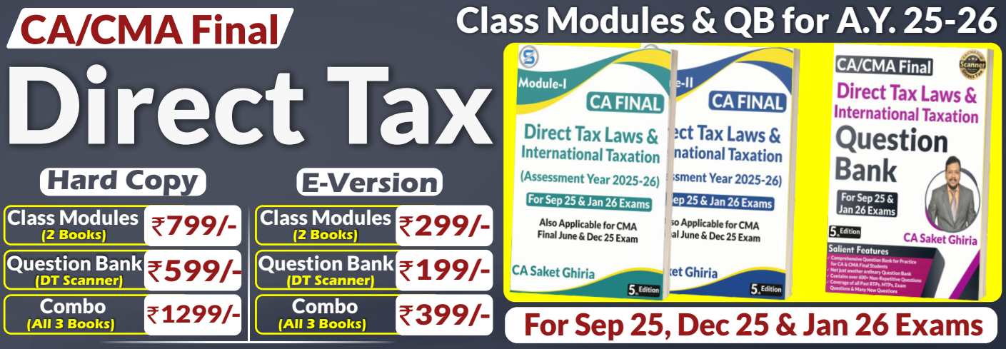 • CA/CMA Final Direct Tax Main Class Books + Question Bank Combo E-Version (Encrypted PDF) for May 25, Sep 25 & Jan 26 Exams by CA Saket Ghiria